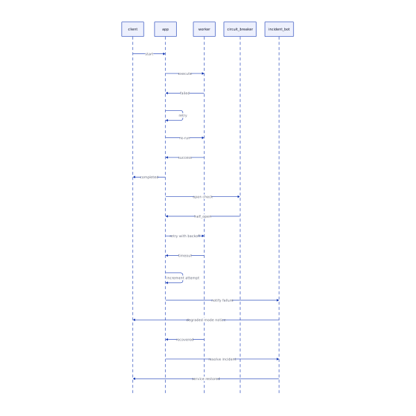 Loopback sequence for background job retries and completion signaling. Enterprise variant that adds incident bot notifications and service recovery messaging.