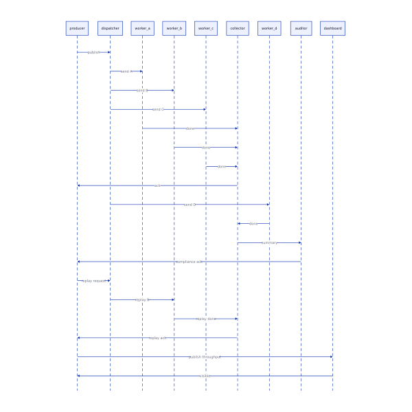Fan-out event dispatch with multi-worker completion acknowledgement. Enterprise variant that adds replay workflow and throughput dashboard publication.